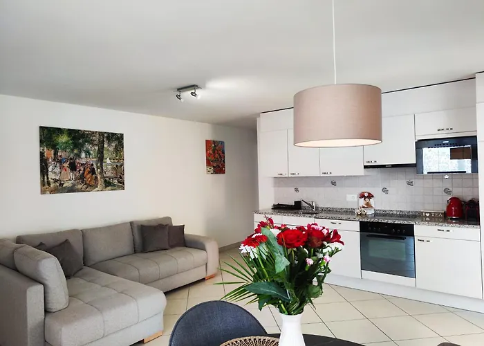 Appartamento Casa Renoir - Schritte Zum Zee Locarno, di 65 m², situato a 700 m dalla Piazza Grande di Locarno e Kursaal Locarno SA, vanta una vista sulla strada. L'appartamento dispone di una terrazza con vista sulle montagne.